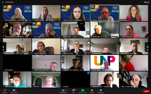 Op dinsdag 23 maart sloten we vanuit GreenDrinks aan bij het Webinar âWaar zit de winst van Impact Ondernemen?â georganiseerd door VNO-NCW/MKB Noord en Impact Noord. Tijdens het webinar legde Jan Willem Wennekes van Impact Noord uit wat Impact Ondernemen inhoudt, deelden Impactondernemers Douwe Jan Boersma en Adriaan Pals hun verhaal en was er ruimte voor vragen en discussie.